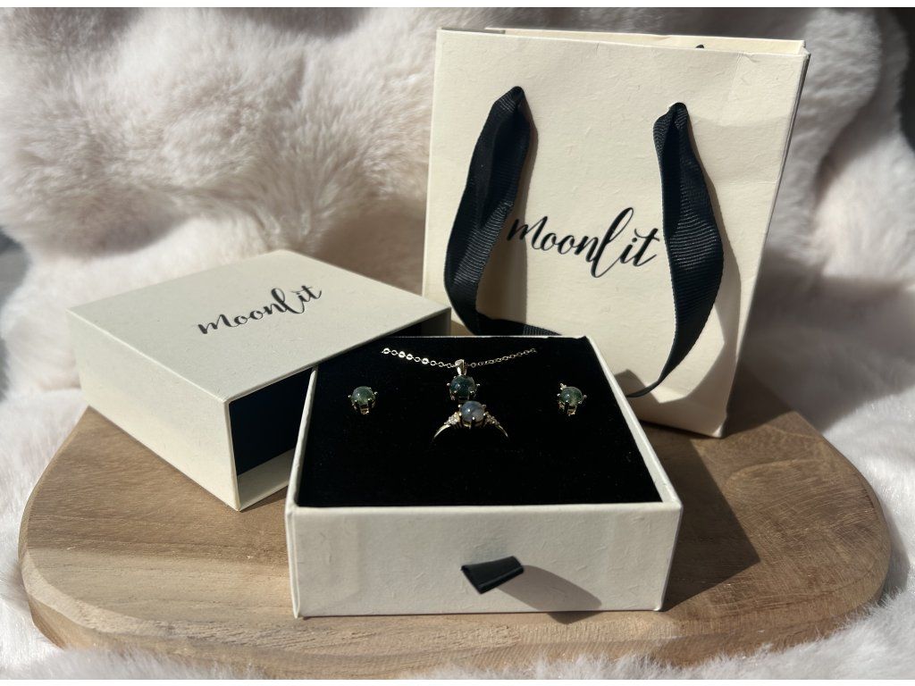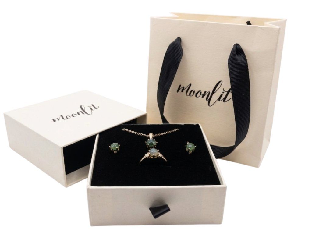 • Design: Elegantní krabička s jemnou strukturou doplněná stylovou taštičkou s logem Moonlit. Nadčasové barevné provedení působí čistě a luxusně, vhodné pro jakýkoliv typ šperku.