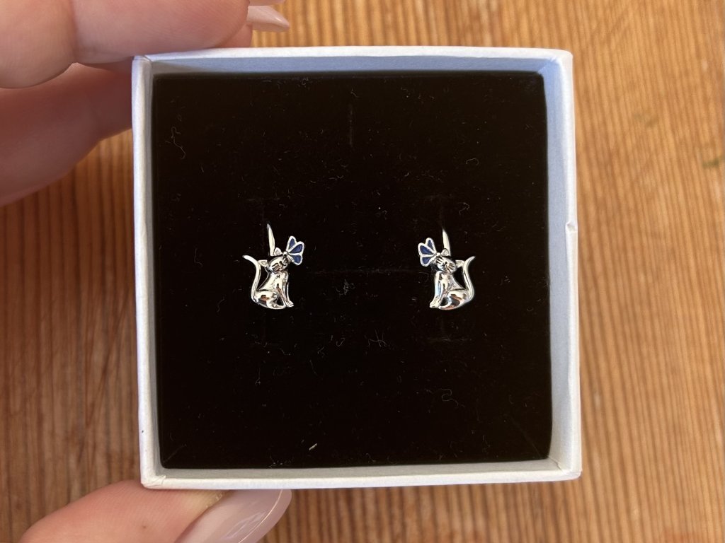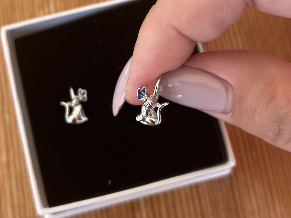 Design: Náušnice s motivem kočičky a modrého motýlka symbolizují dětskou zvídavost, hravost a něhu. Jemné detaily a smaltované křídla dodávají náušnicím půvab a osobitost.
