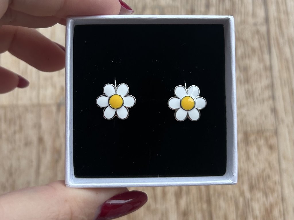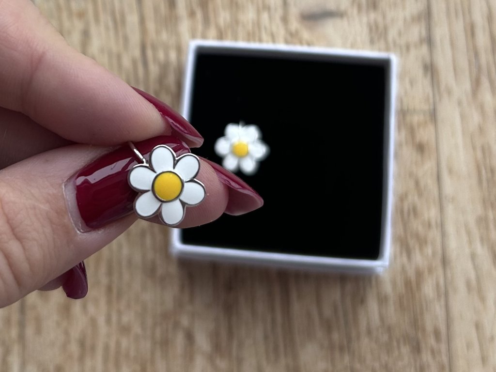 Design: Tyto dětské náušnice ve tvaru kopretiny mají jemný a veselý design s bílými okvětními lístky a žlutým středem, který vypadá jako pravá květina. Jejich zářivý vzhled potěší každou malou milovnici přírody a květinových motivů.
