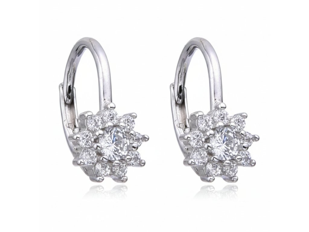 Dětské stříbrné náušnice kytička s čirými zirkony