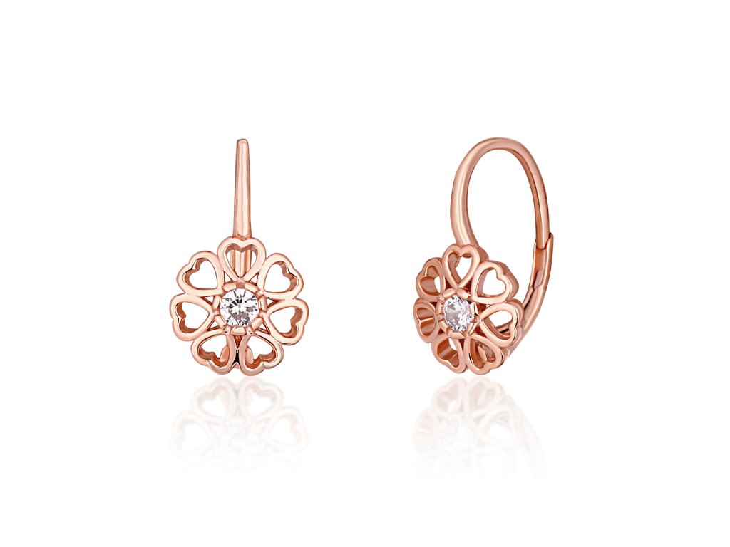Dětské stříbrné náušnice kytička ze srdíček se zirkonem pozlacené rose