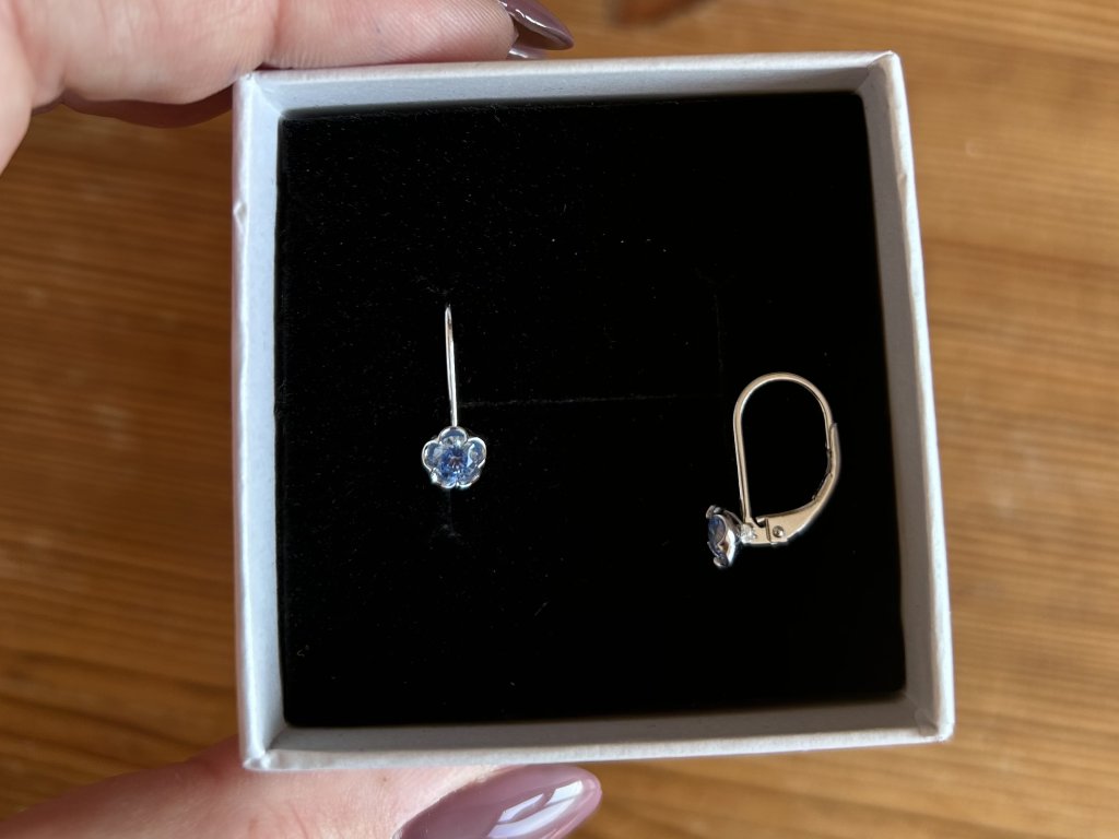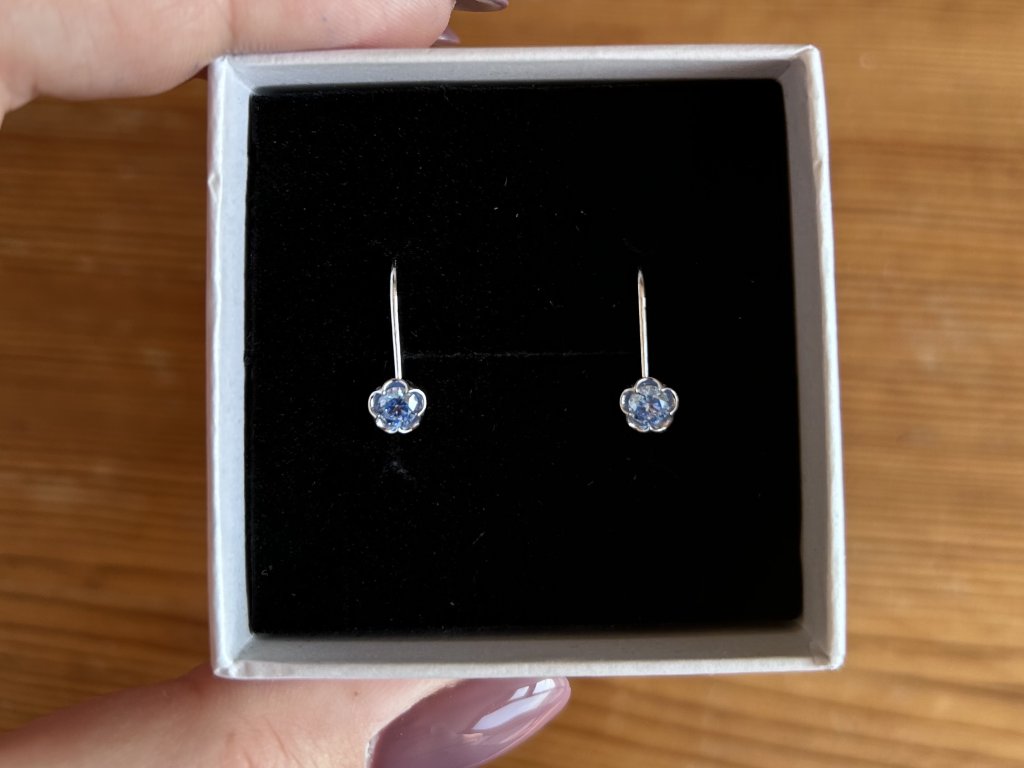 Dětské stříbrné náušnice s modrým květinovým zirkonem
