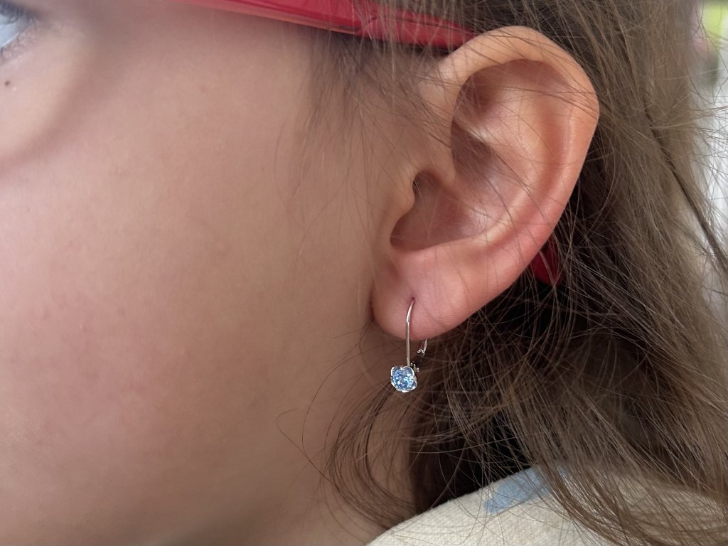 Rozměr: Náušnice mají výšku 17 mm a šířku 5 mm. Díky své hmotnosti pouhých 1,4 gramů jsou lehké a pohodlné na nošení, což je ideální pro dětské ouško.