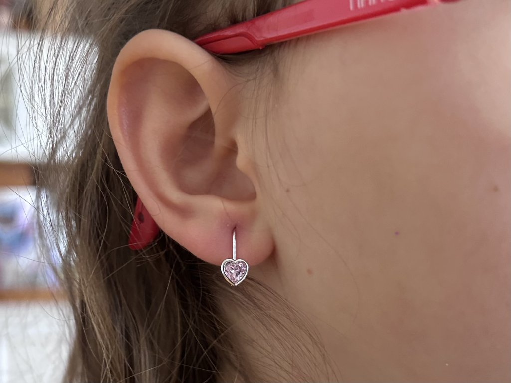 Dětské stříbrné náušnice s růžovým srdíčkem zirkonem