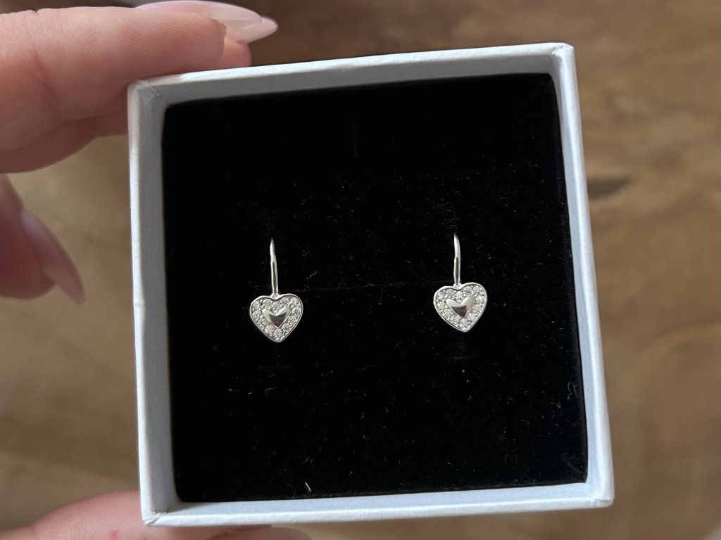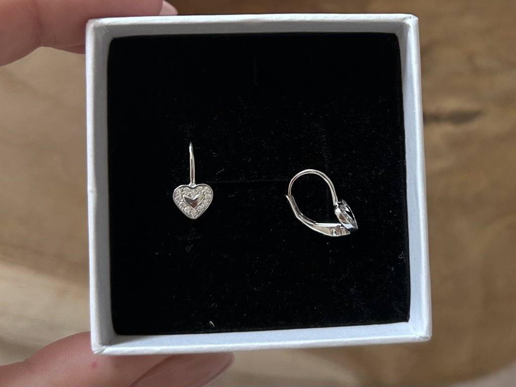 Dětské stříbrné náušnice srdíčko s čirými zirkony