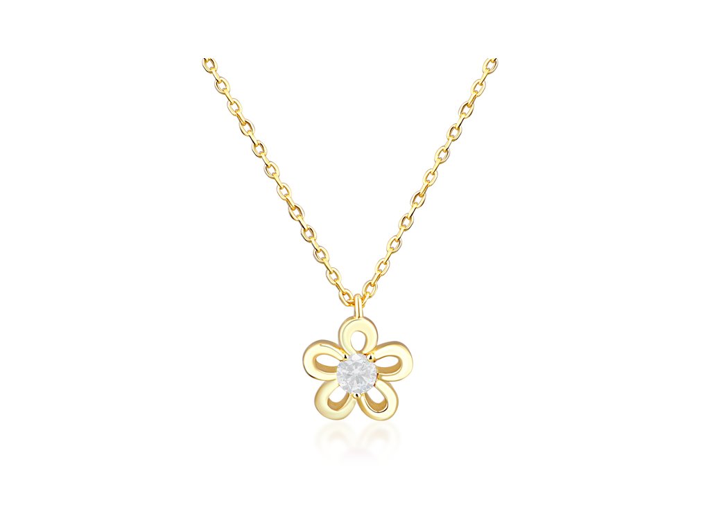 Dětský stříbrný náhrdelník kytička se zirkonem pozlacený