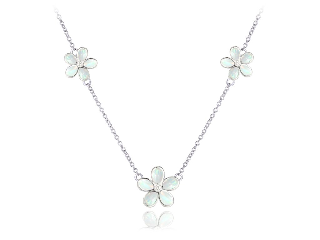 Dětský stříbrný náhrdelník s květinami a syntetickým opálem