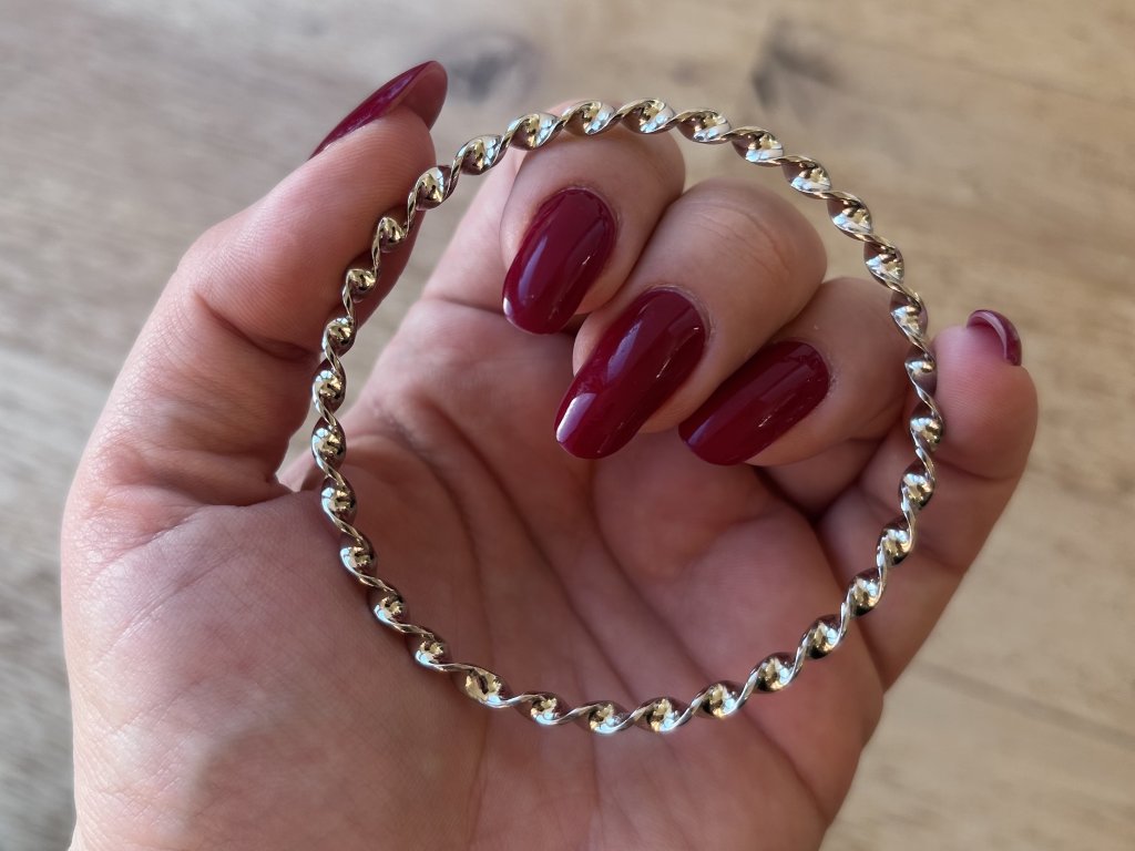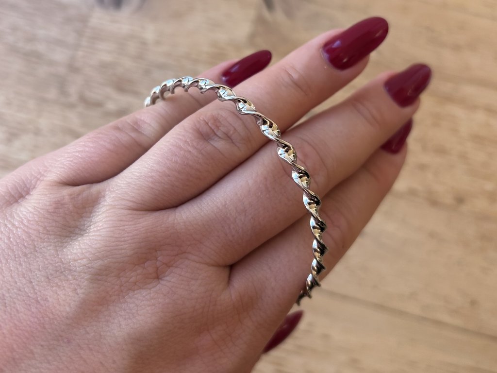 - Design: Tento náramek zaujme svým točeným vzorem, který šperku přináší jedinečnou texturu a působí dynamicky. Točený design nejen přidává na atraktivitě, ale také zajišťuje, že šperk působí originálně a moderně. Rhodiovaná úprava dodává náramku jemný lesk, který vynikne v kombinaci s různými outfity.