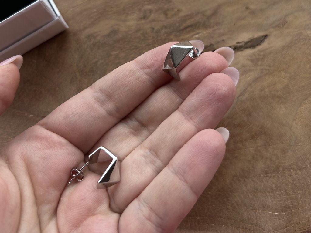 - Design: Tyto náušnice v sobě spojují moderní geometrii s nadčasovou elegancí. Jejich hranaté linie a jedinečný otevřený tvar působí odvážně, ale zároveň minimalisticky, což je činí ideální volbou pro ženy s citem pro styl.