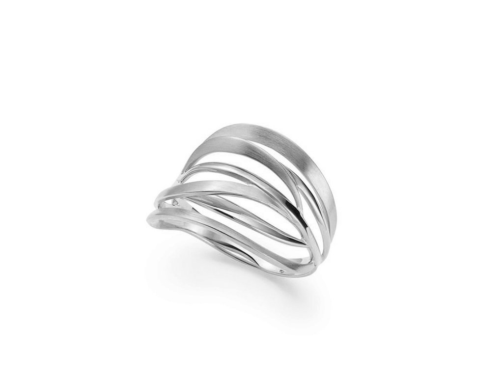 Design: Originální prsten se vzájemně proplétanými liniemi v matném a lesklém provedení. Vlnitý tvar dodává šperku dynamiku a činí z něj výrazný kousek pro ženy, které se nebojí vystoupit z davu.