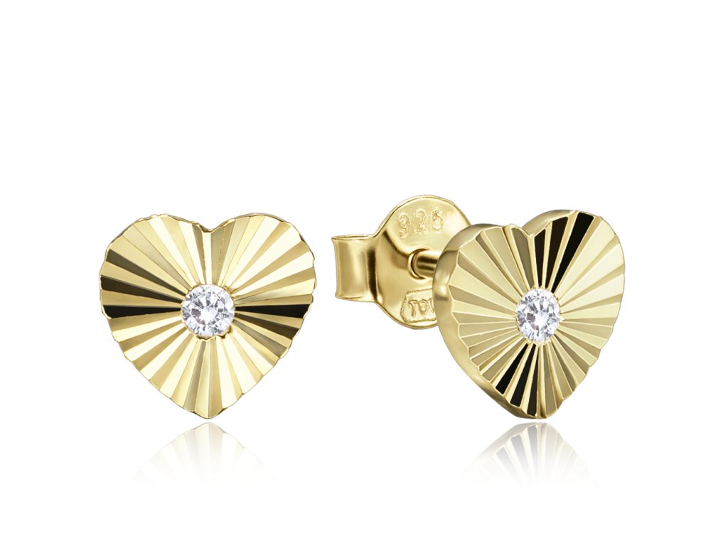 - Design: Náušnice mají tvar srdíček s jemným paprskovitým zdobením a uprostřed jsou osazeny čirým zirkonem, což jim dodává jemný a elegantní vzhled.