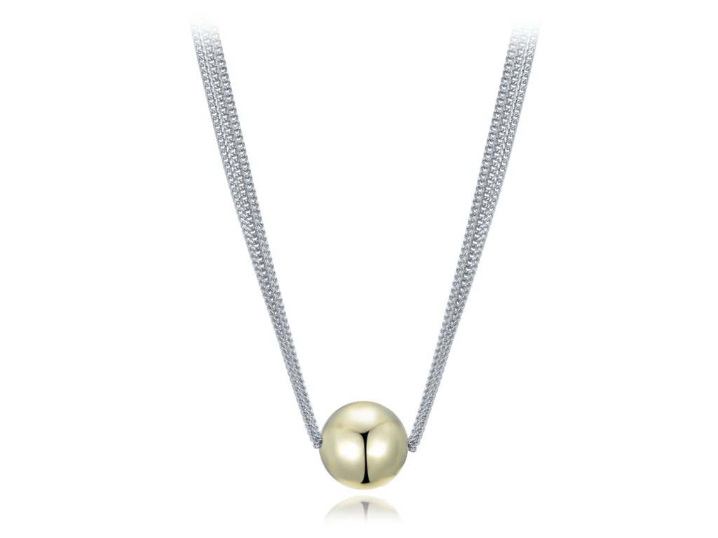 - Design: Náhrdelník tvoří tři jemné stříbrné řetízky, které jsou spojeny výraznou kuličkou ve zlaté barvě. Celkový dojem je moderní, ale stále velmi elegantní.