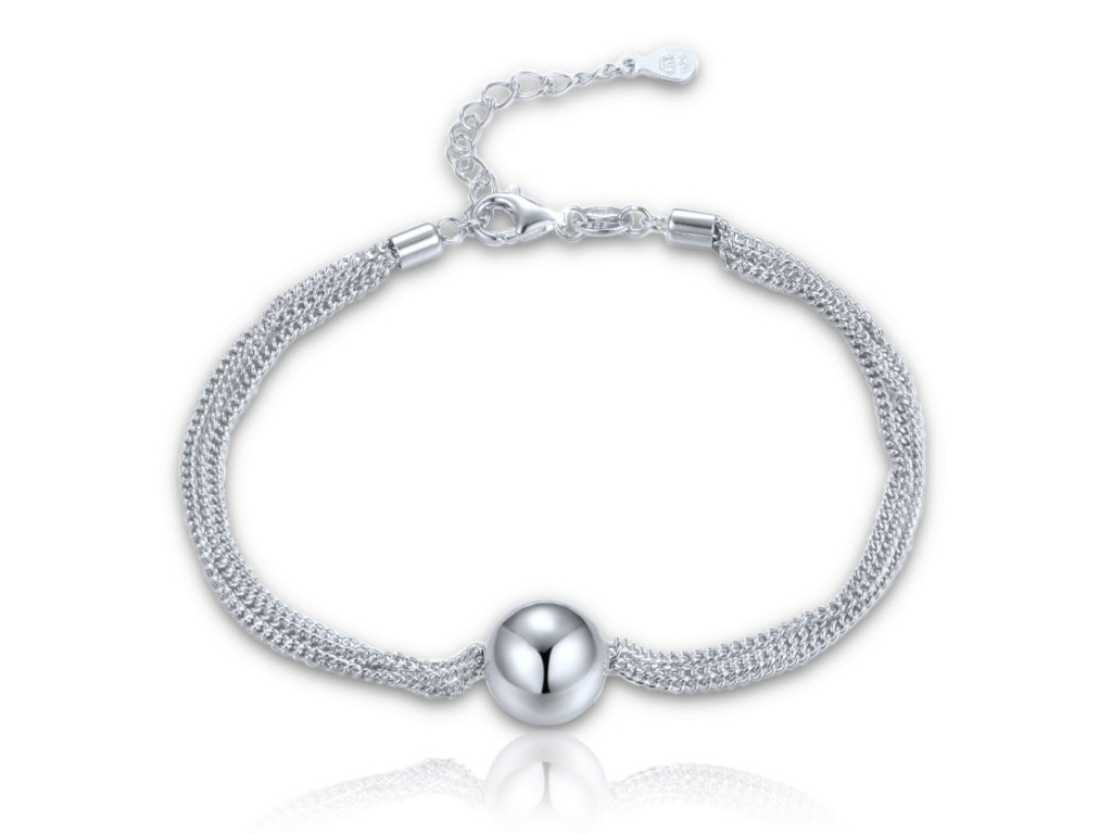 - Design: Náramek tvoří tři jemné řetízky spojené hladkou kuličkou, která je středobodem celého šperku. Působí čistě, elegantně a nadčasově.