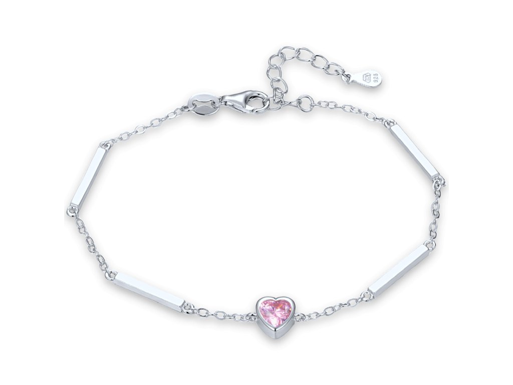 - Design: Náramek zdobí motiv srdce s růžovým zirkonem, který působí jemně a romanticky. Elegantní řetízek doplňují decentní prvky, které podtrhují celkový dojem šperku.