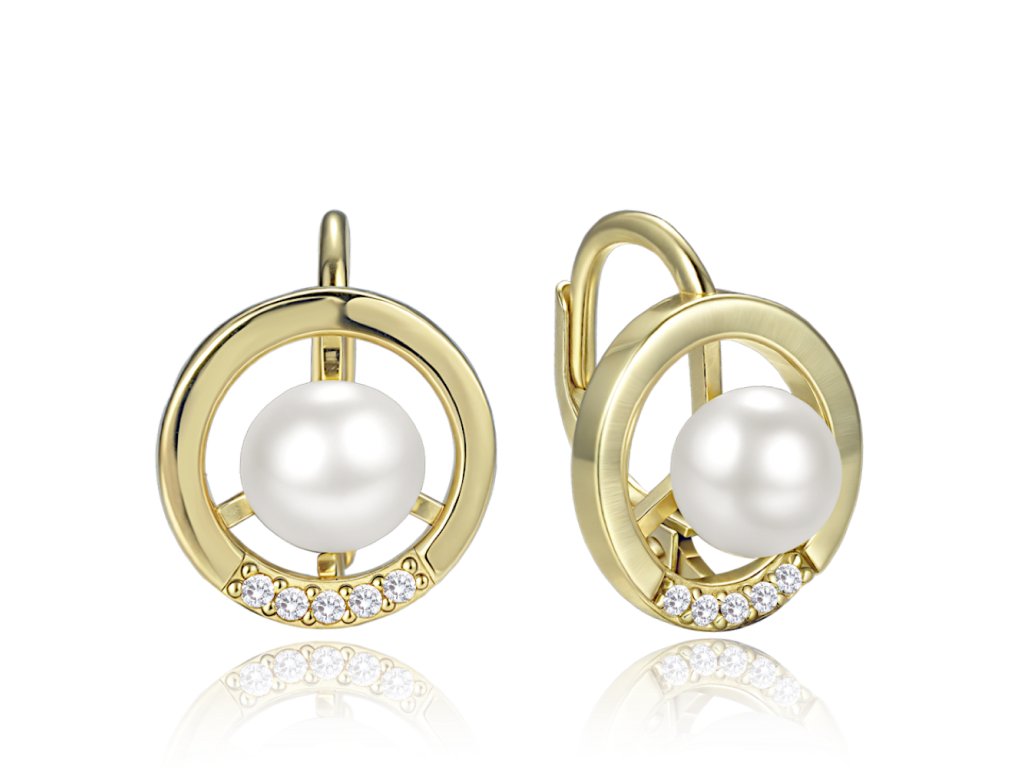 - Design: Náušnice mají tvar kroužků, které zdobí přírodní perla a řada čirých zirkonů, což vytváří harmonický a elegantní vzhled.