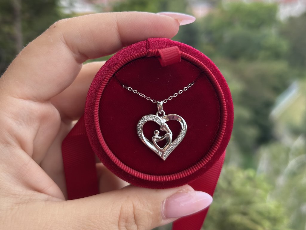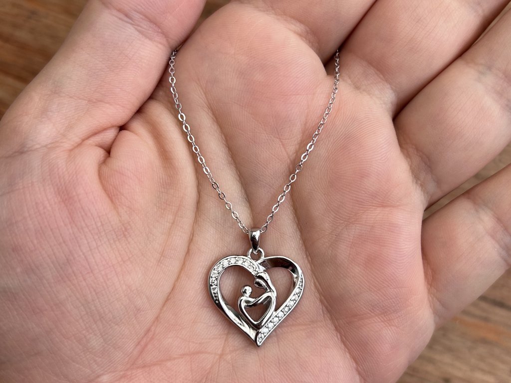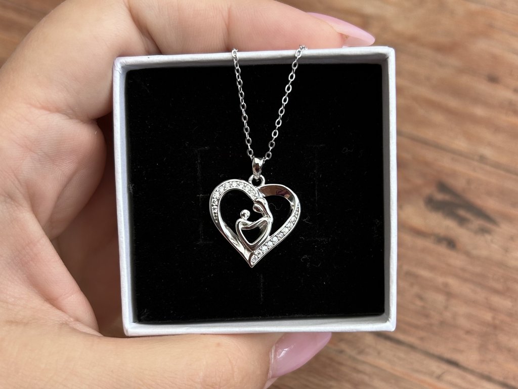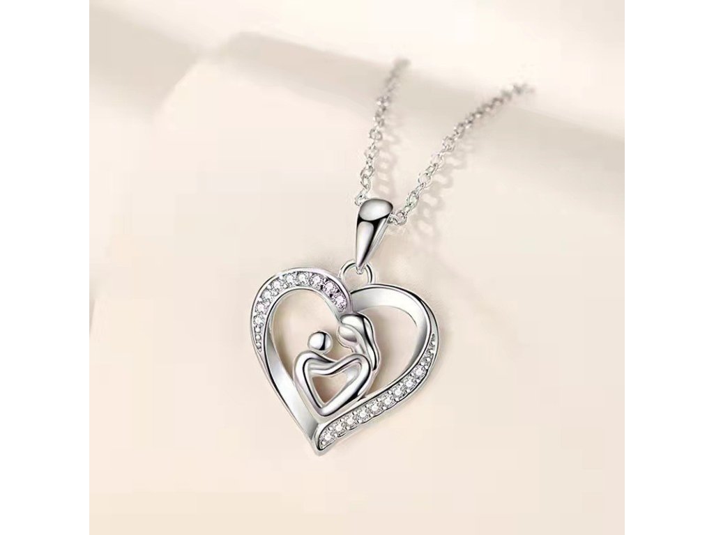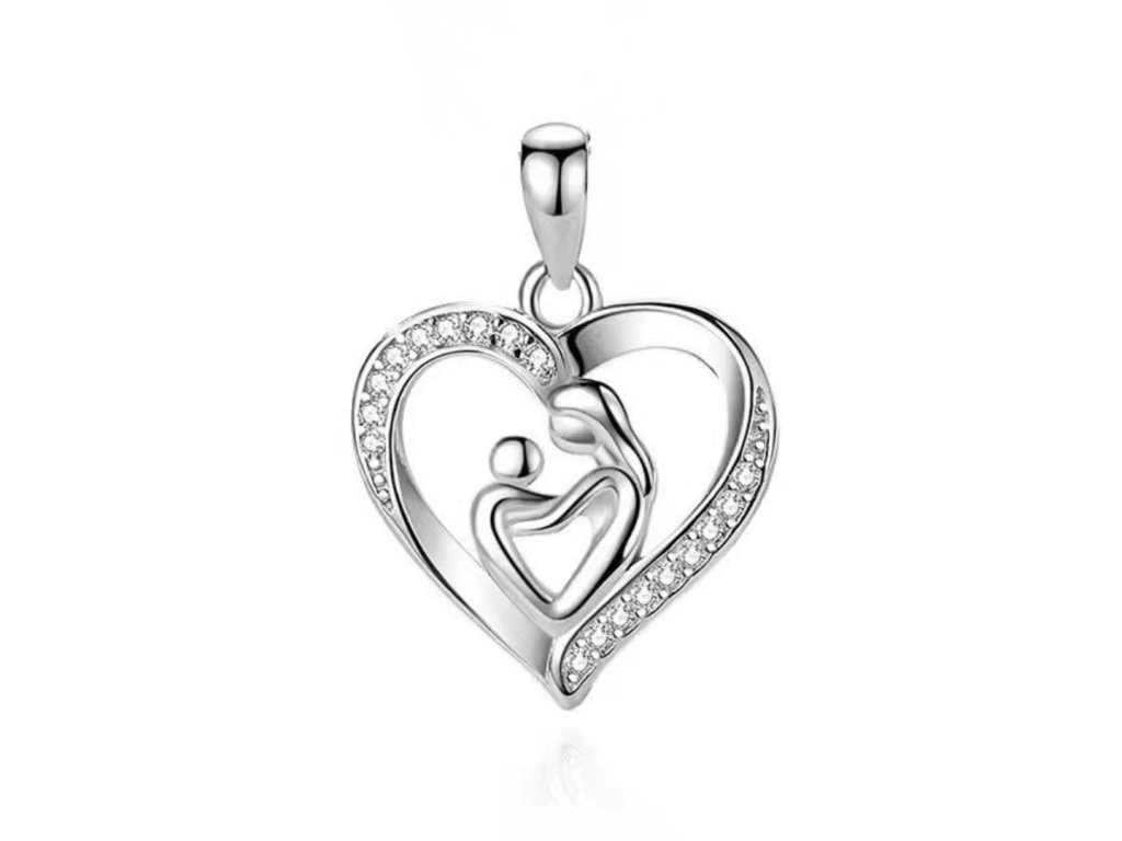 Design: Romantický přívěsek ve tvaru srdce s postavou matky a dítěte. Symbolizuje bezpodmínečnou lásku a rodinné pouto. Zdobený jemnými zirkony pro elegantní třpyt.