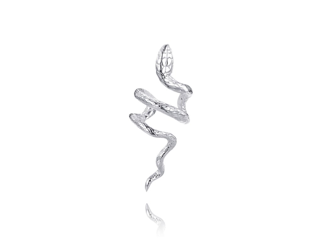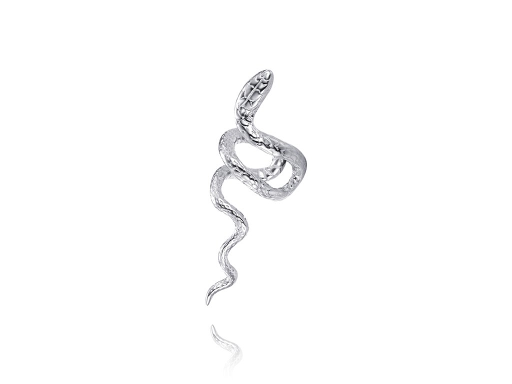 Design: Tato stříbrná záušnice ve tvaru hada je inspirovaná moderním a odvážným designem. Hadí křivky, jemně obepínající ucho, dodávají jedinečný a dramatický prvek, který zaujme na první pohled. Záušnice je vhodná na pravé ucho, aby dokonale kopírovala jeho tvar.