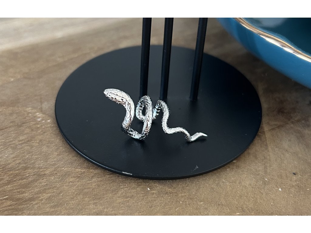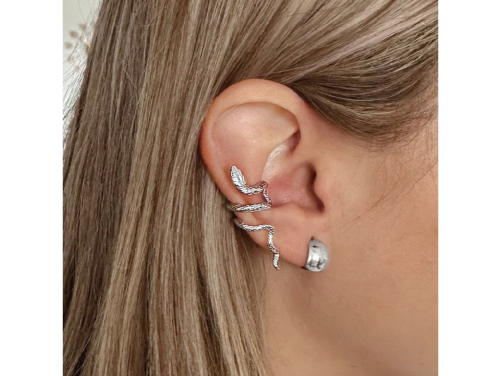 Stříbrná záušnice ve tvaru hada na pravé ucho