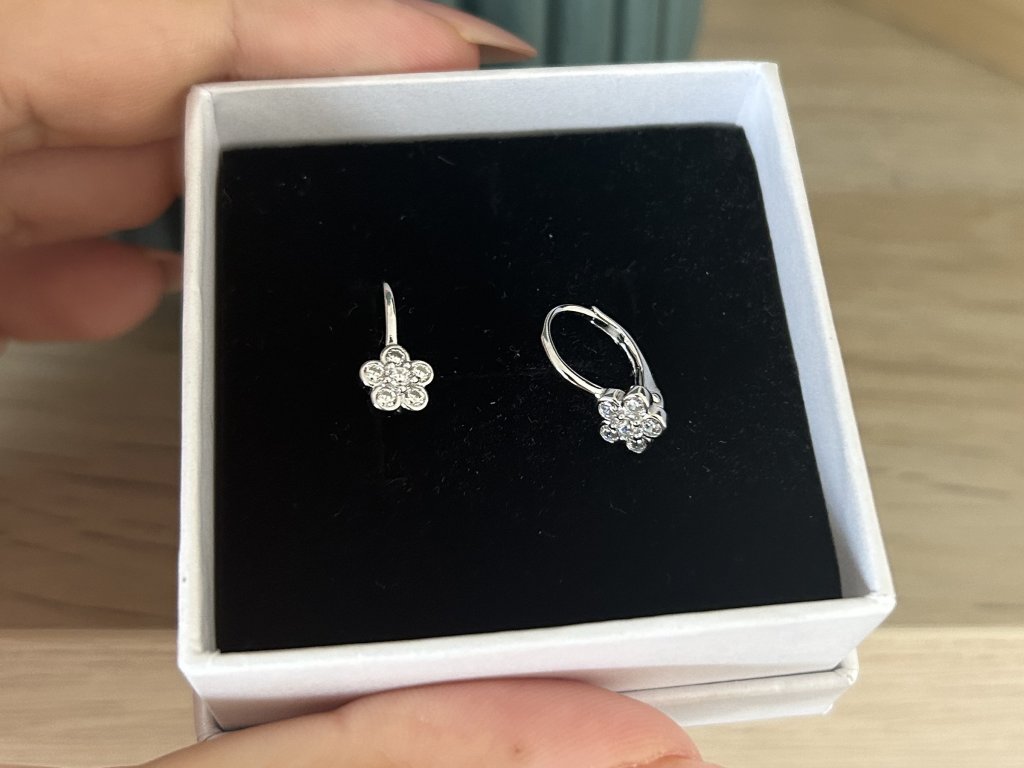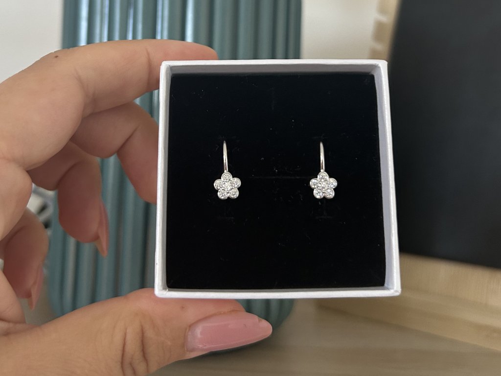 Design: Jemný květinový motiv s pěti okvětními lístky a centrálním kamenem, který dodává náušnicím hravý, ale elegantní vzhled. Zirkony jsou precizně vsazeny pro maximální třpyt.