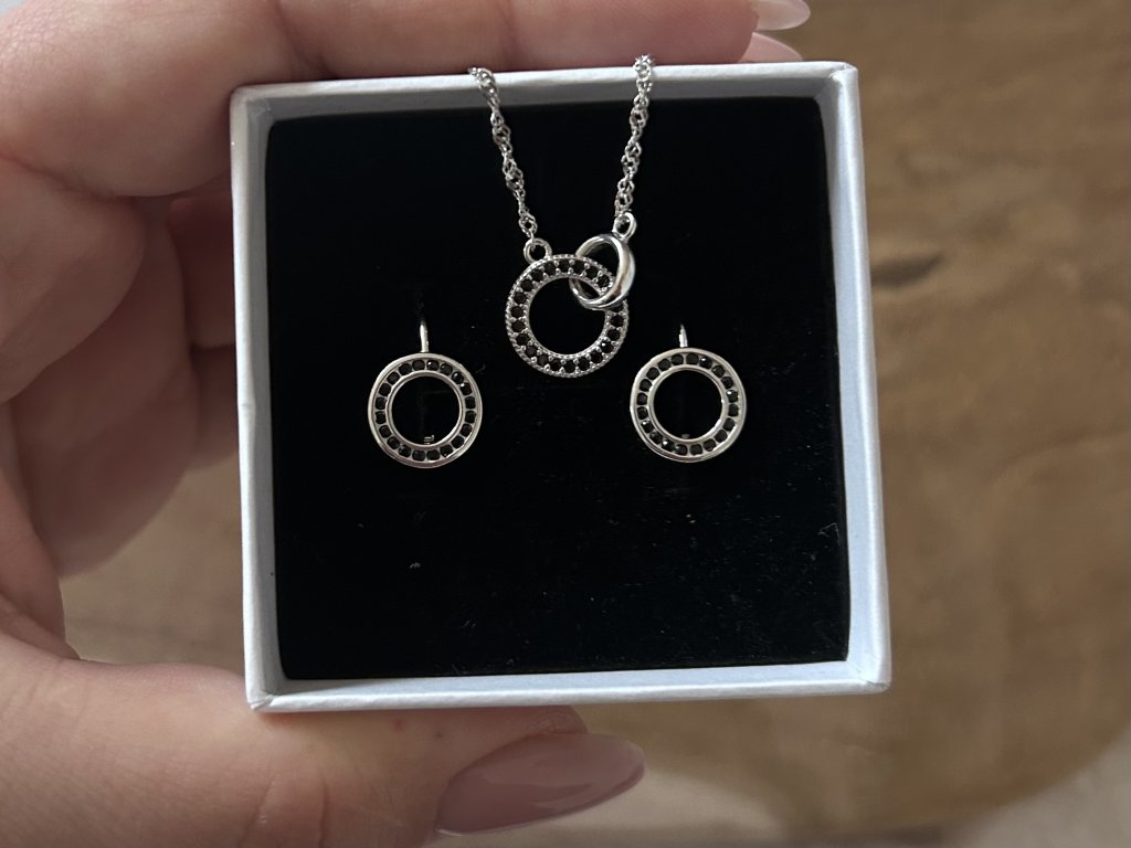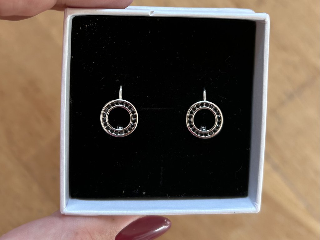 • Design: Elegantní kulaté náušnice s černými zirkony představují moderní a výrazný doplněk, který přitáhne pozornost na první pohled. Minimalistický tvar kruhu symbolizuje jednotu a nekonečnost, zatímco kontrast tmavých kamenů přidává šperku na výrazu a originalitě.