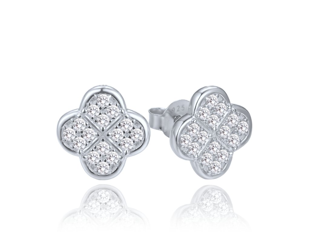 Design: Náušnice ve tvaru stylizovaného čtyřlístku s drobnými pravými zirkony tvoří sofistikovaný detail, který přitahuje pozornost a zároveň zůstává jemný. Lesklý rhodiovaný povrch chrání šperk a zajišťuje jeho stálý vzhled bez ztmavnutí. Oblíbený motiv čtyřlístku vyjadřuje štěstí, ochranu a ženskost.