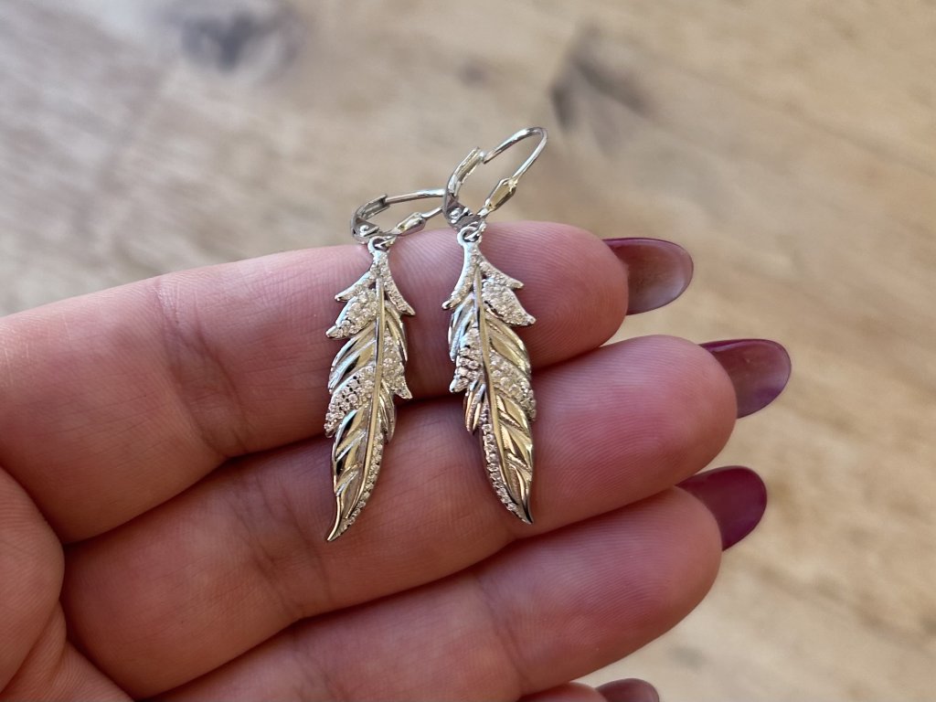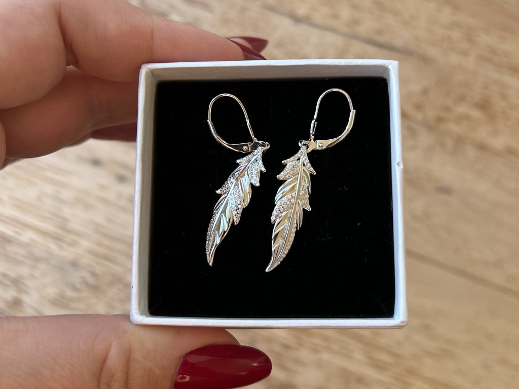 Design: Visací náušnice inspirované tvarem pírka s detailním zpracováním jednotlivých linií. Kombinace hladkých a jemně strukturovaných ploch vytváří zajímavý efekt světla a dodává šperku hloubku i lehký třpyt. Protáhlý tvar působí elegantně a vzdušně.