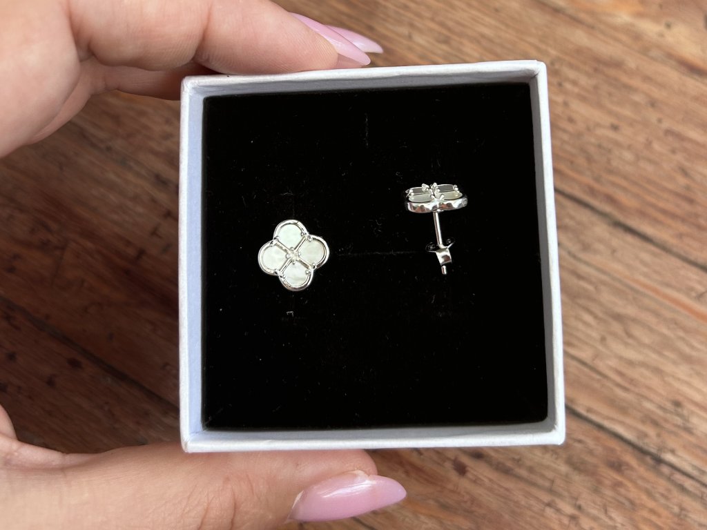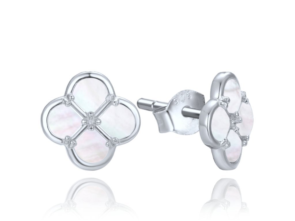 Stříbrné náušnice s čtyřlístkem a perletí