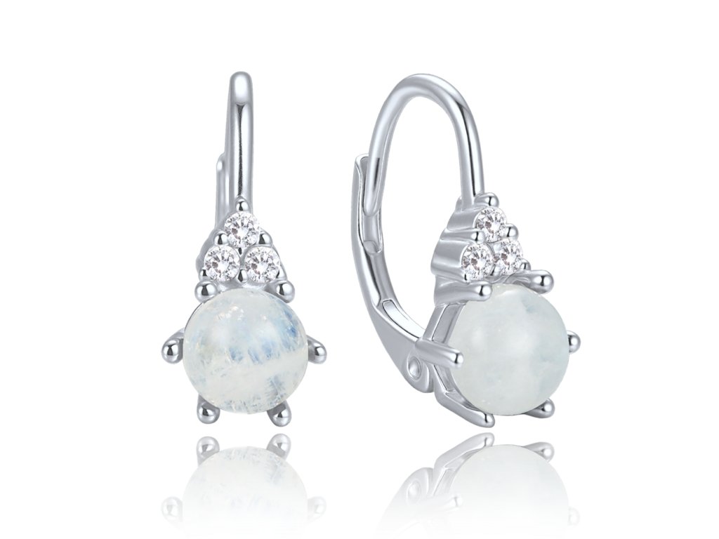 Stříbrné náušnice s měsíčním kamenem a zirkony