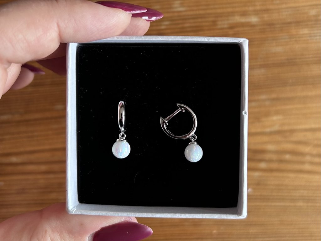 - Materiál: Náušnice jsou vyrobeny z kvalitního stříbra 925/1000, doplněny syntetickým opálem, který krásně vyniká na jednoduchém podkladu. Rhodiovaná úprava nejen zajišťuje luxusní vzhled, ale také poskytuje ochranu před opotřebením a ztrátou lesku.