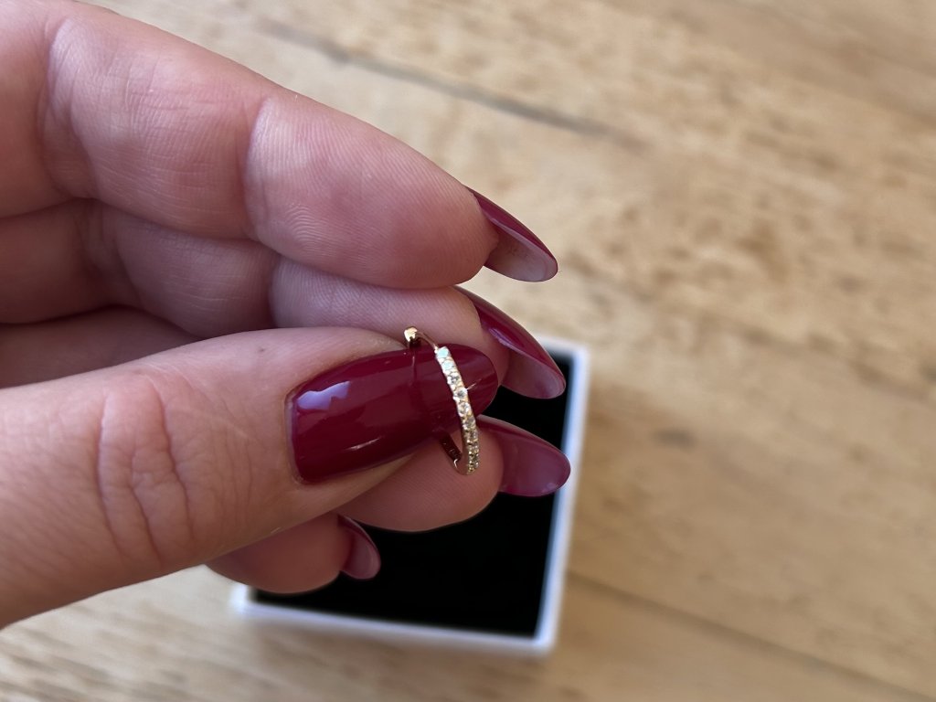 - Rozměry: Náušnice mají průměr 16 mm a šířku 1 mm. Hmotnost je 1,4 g, díky čemuž jsou lehké a pohodlné pro celodenní nošení.