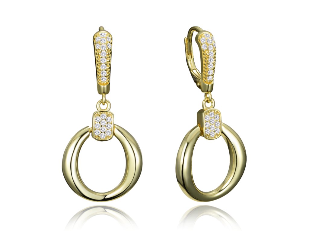 Stříbrné visací náušnice kruhy se zirkony pozlacené