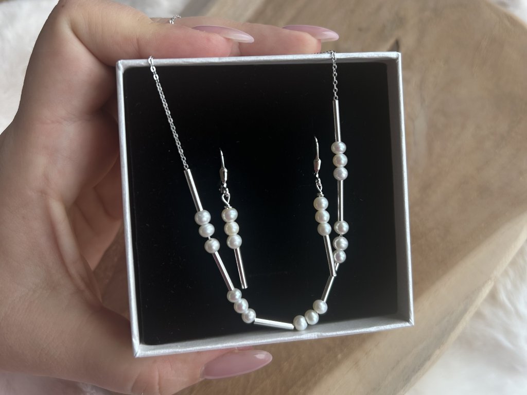 Údržba: Perly jsou citlivé – po nošení je otřete suchým hadříkem, chraňte před parfémem, kosmetikou a vlhkostí.