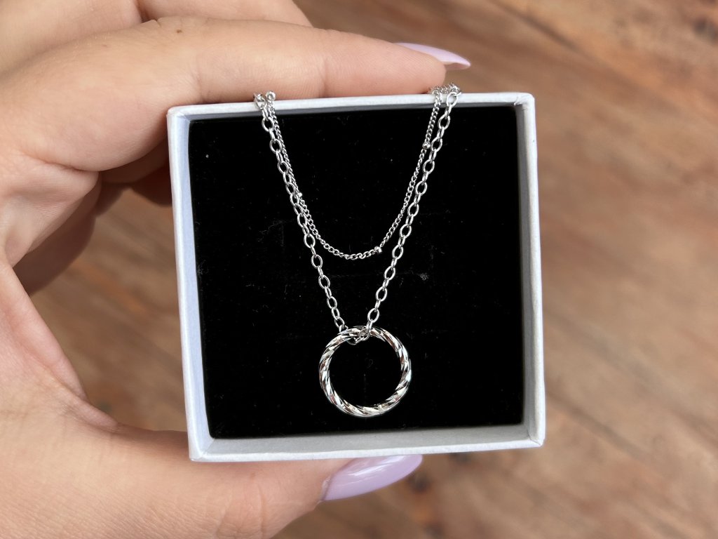 Stříbrný dvouvrstvý náhrdelník s přívěskem ve tvaru kruhu