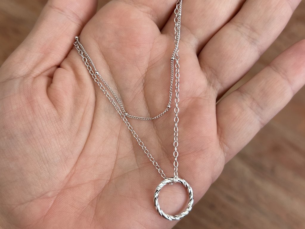 - Design: Tento nádherný náhrdelník se skládá ze dvou jemných řetízků různých délek, které jsou propojeny minimalistickým kruhovým přívěskem. Design náhrdelníku je inspirován jednoduchou elegancí a čistými liniemi, které nikdy nevyjdou z módy. Rhodiovaná povrchová úprava zajišťuje dlouhotrvající lesk a ochranu proti poškrábání a zmatnění.