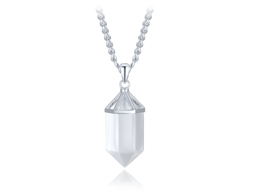 Design: Luxusní náhrdelník s výrazným přívěskem z broušeného přírodního křišťálu a ozdobným úchytem osazeným třpytivými zirkony. Geometrický tvar přívěsku a čisté linie dodávají šperku moderní, ale zároveň nadčasový charakter. Masivnější řetízek podtrhuje exkluzivní vzhled a přidává náhrdelníku punc luxusu.