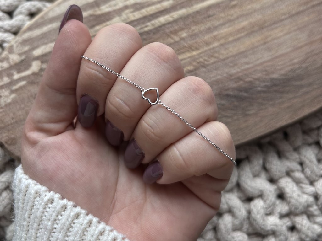 Stříbrný minimalistický náramek se srdcem