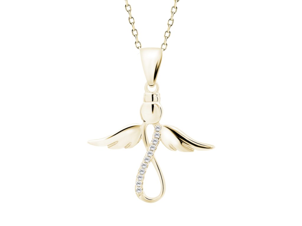 Stříbrný náhrdelník Anděl Nekonečno se zirkony pozlacený