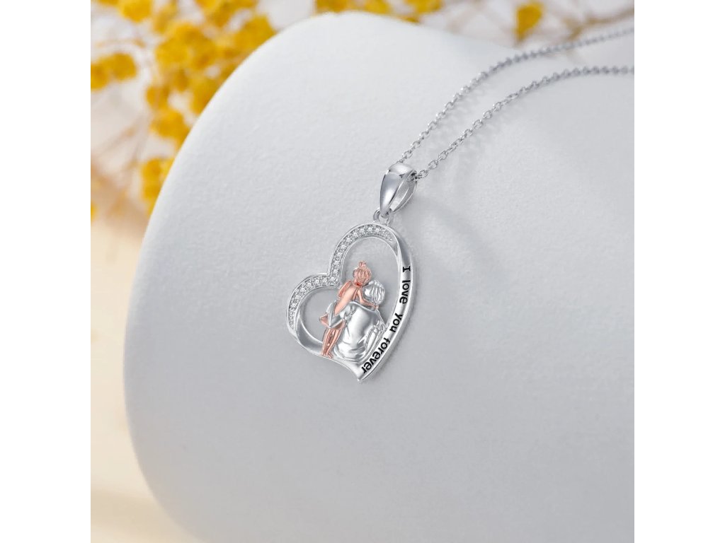 Design: Elegantní přívěsek ve tvaru srdce s propracovaným vyobrazením otce, který drží v náručí svou dceru. Postavy jsou zvýrazněny jemným růžovým zlacením, které dodává kompozici něžnost. Zirkony lemující tvar srdce dodávají šperku decentní třpyt a pocit výjimečnosti.