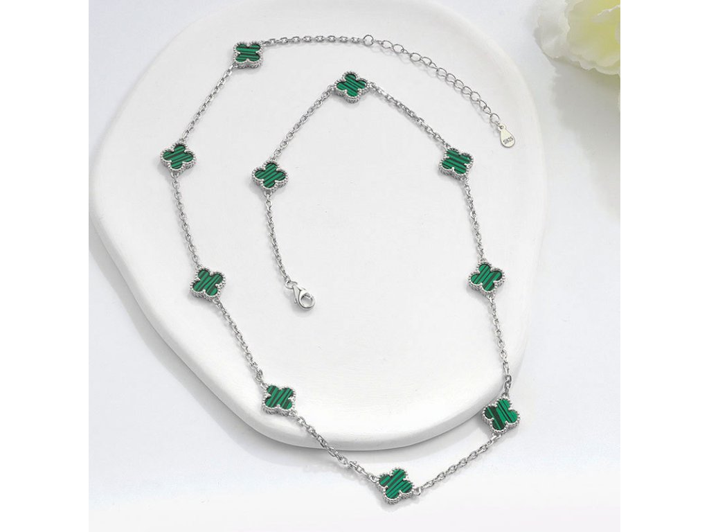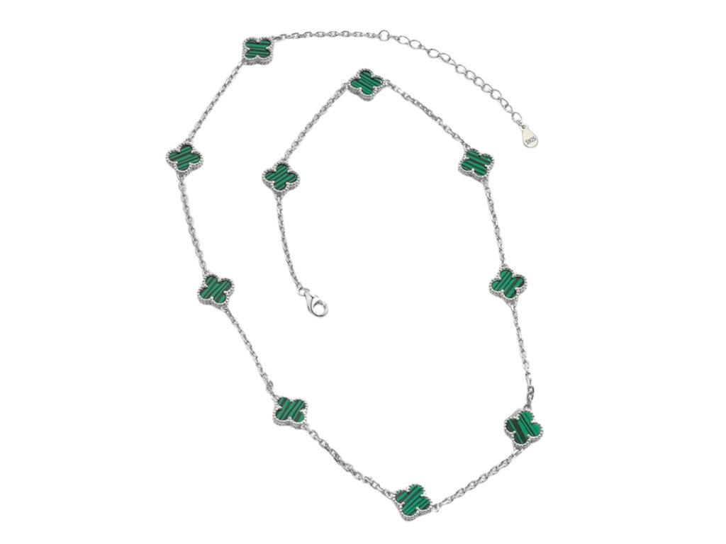 Stříbrný náhrdelník s malými čtyřlístky s malachitem