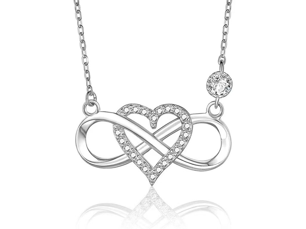 Jemný stříbrný náhrdelník s motivem srdce a nekonečna se zirkony