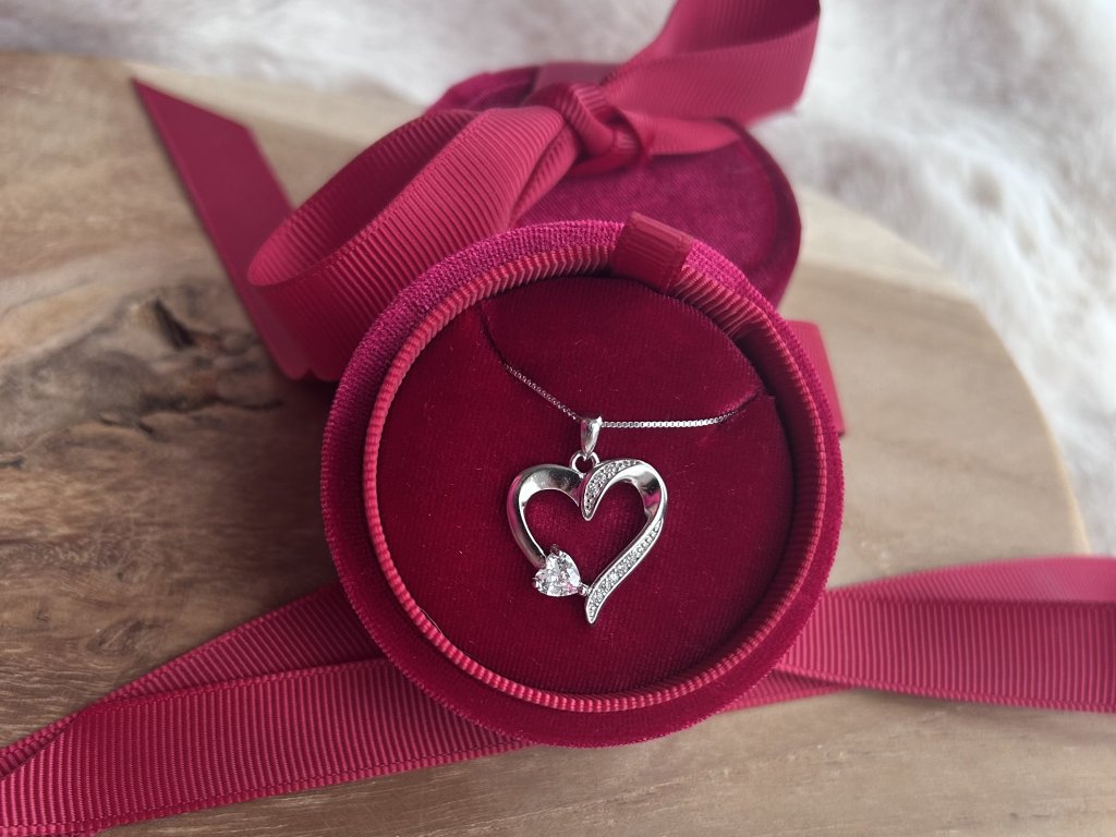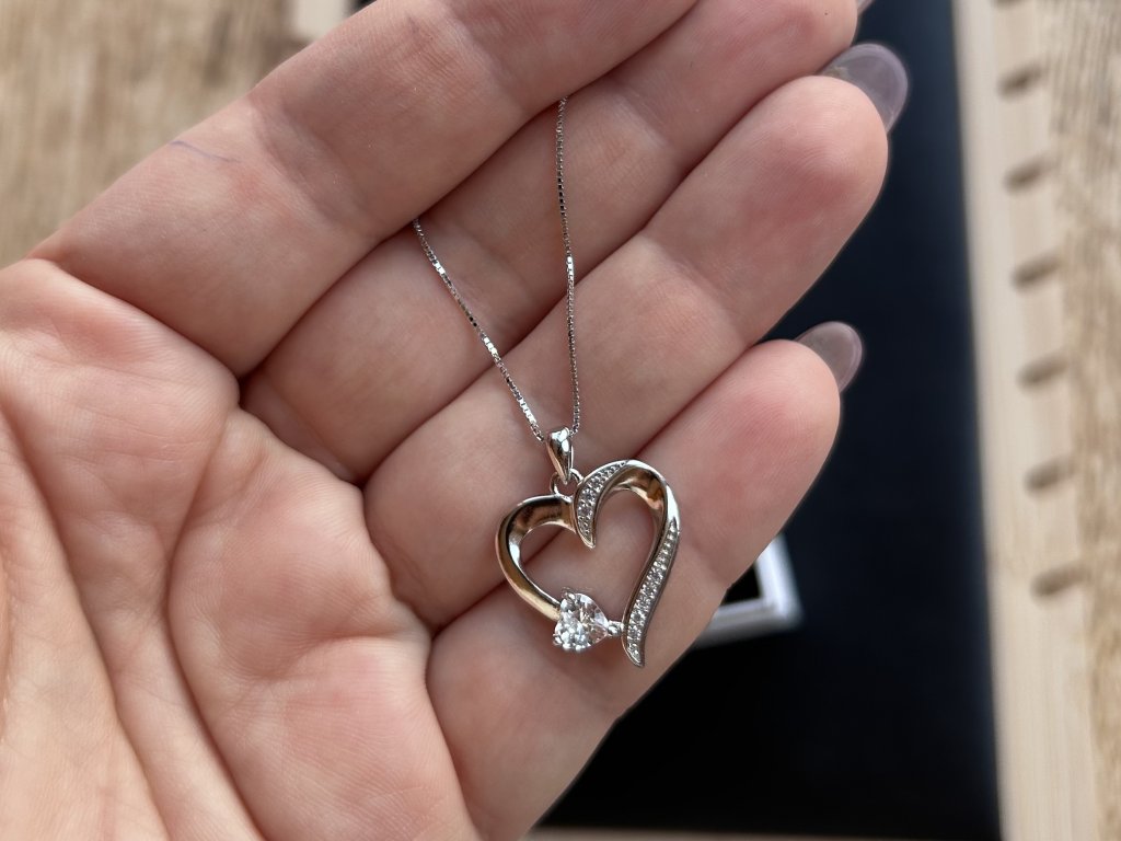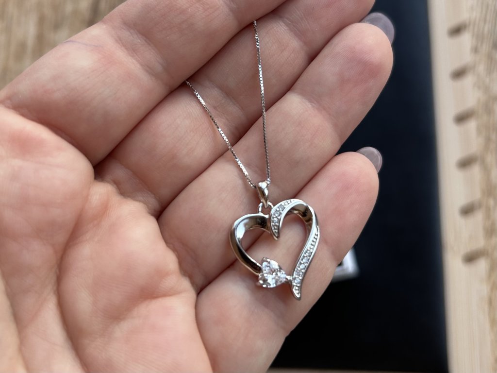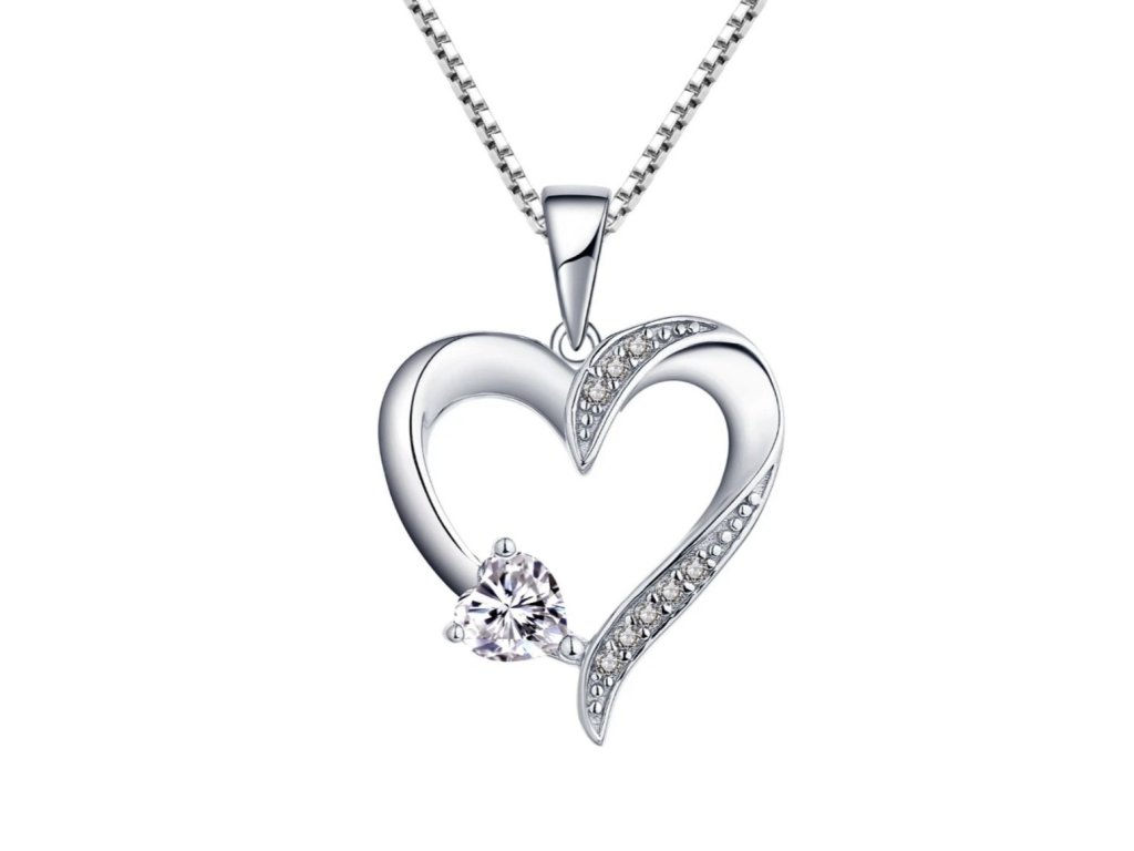 Stříbrný náhrdelník s otevřeným srdcem a zirkony