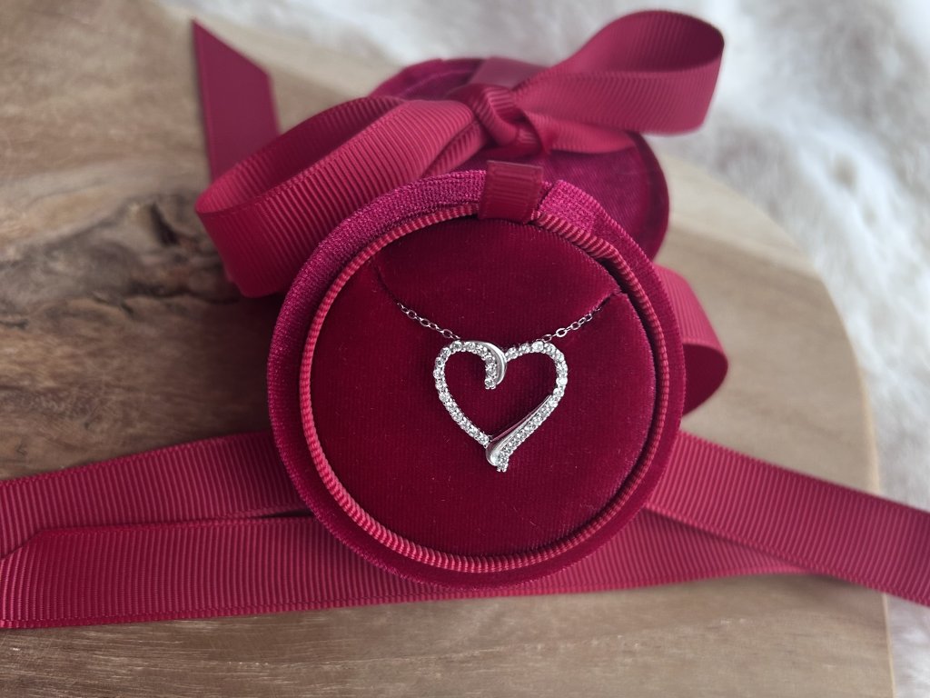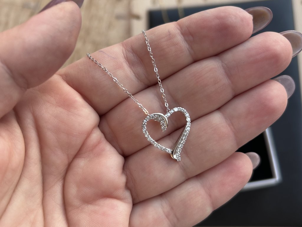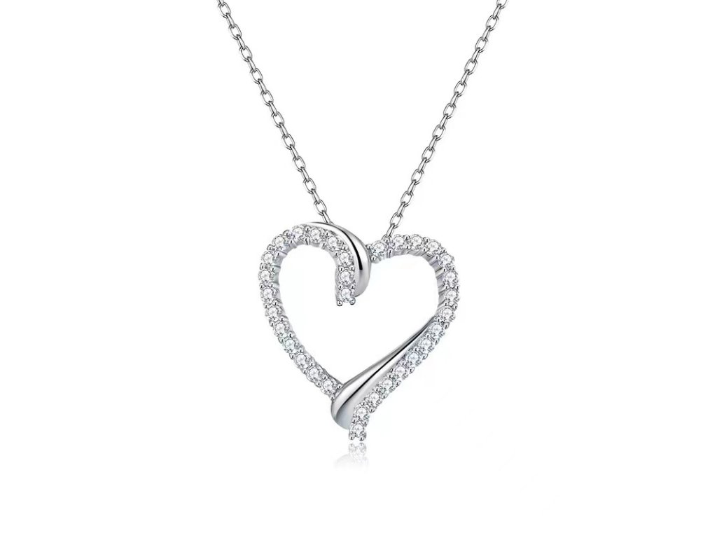 Stříbrný náhrdelník s otevřeným srdcem ze zirkonů