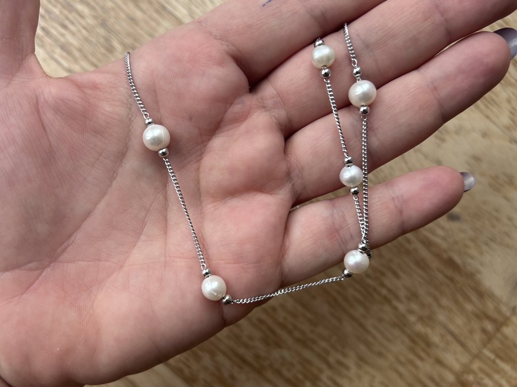 - Design: Tento jemný a stylový náhrdelník je tvořen elegantním řetízkem zdobeným několika dokonale hladkými přírodními perlami. Jednoduchý, ale sofistikovaný vzhled z něj činí ideální doplněk pro každou příležitost.