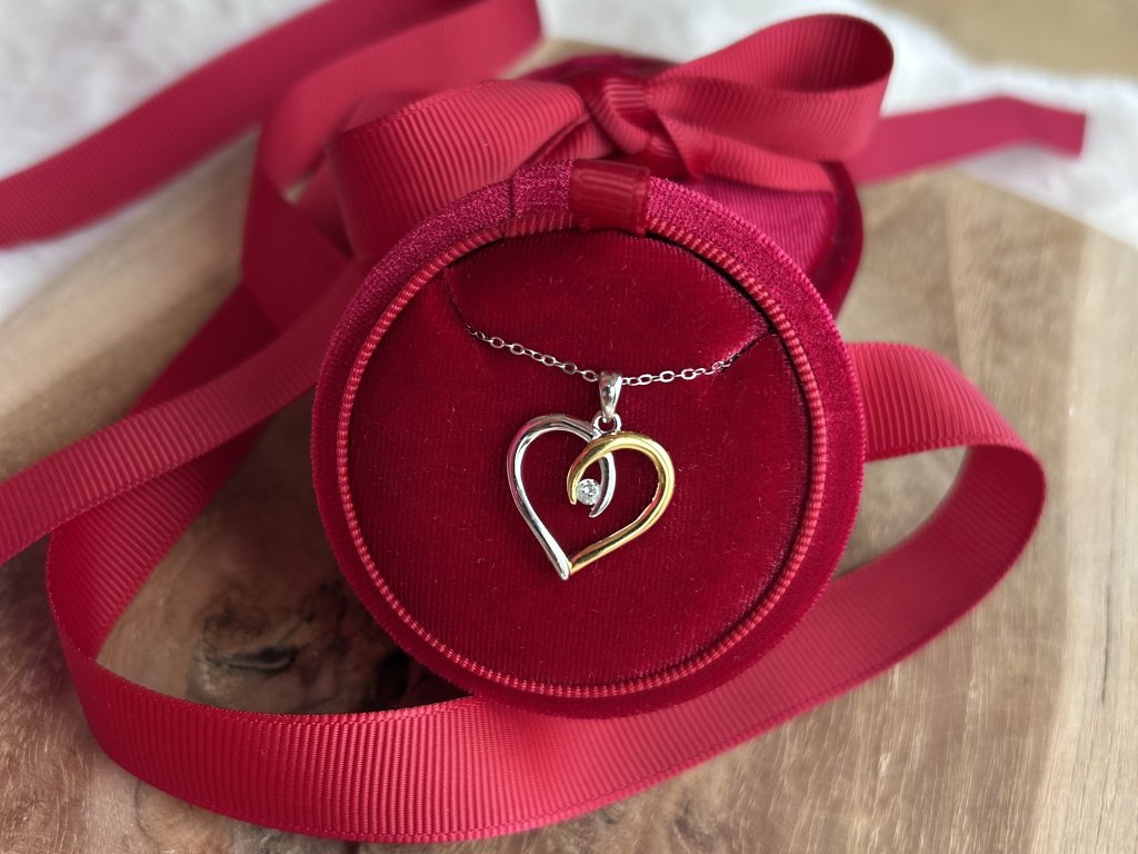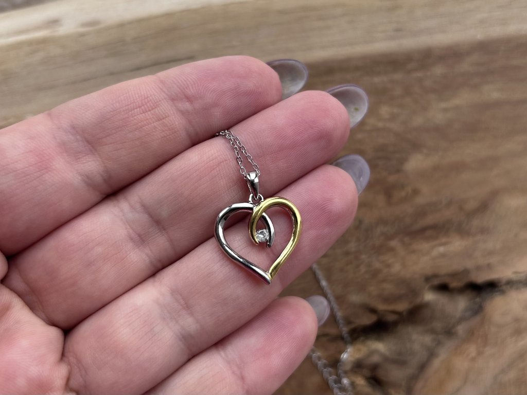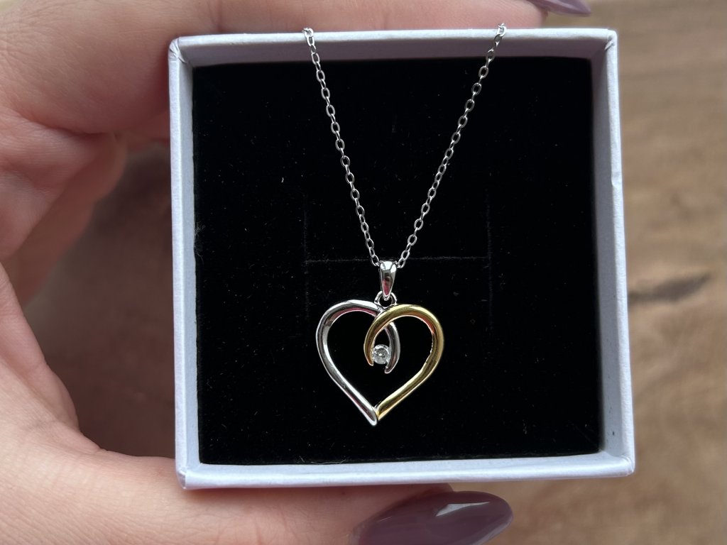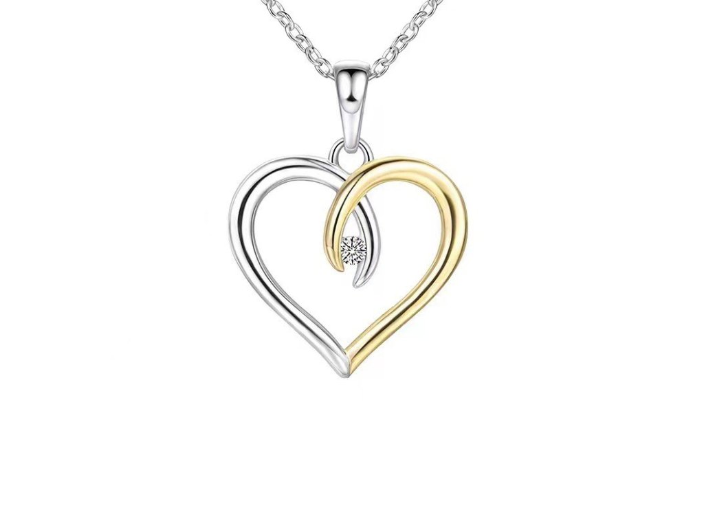Design: Propletené srdce v kontrastu stříbrného a zlatého tónu vytváří harmonický a vizuálně zajímavý celek. Jemný zirkon uvnitř motivu podtrhuje myšlenku propojení.
