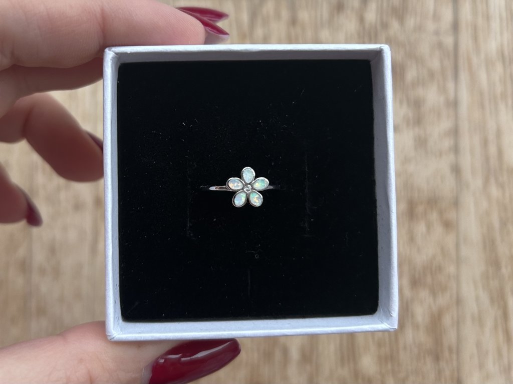 Jemný stříbrný prstýnek, který vám vykouzlí úsměv na tváři. Jeho dominantou je květ s okvětními lístky ze syntetického opálu, které září jemnými duhovými odlesky. Ideální dárek pro romantickou duši nebo symbol radosti v každodenním nošení. Elegantní, přesto zábavný doplněk do vaší šperkovnice.