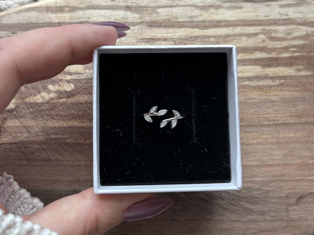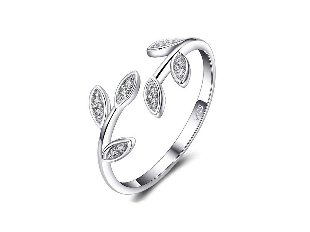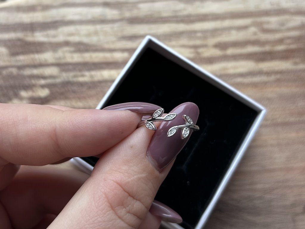 Stříbrný prsten s lístky a zirkony