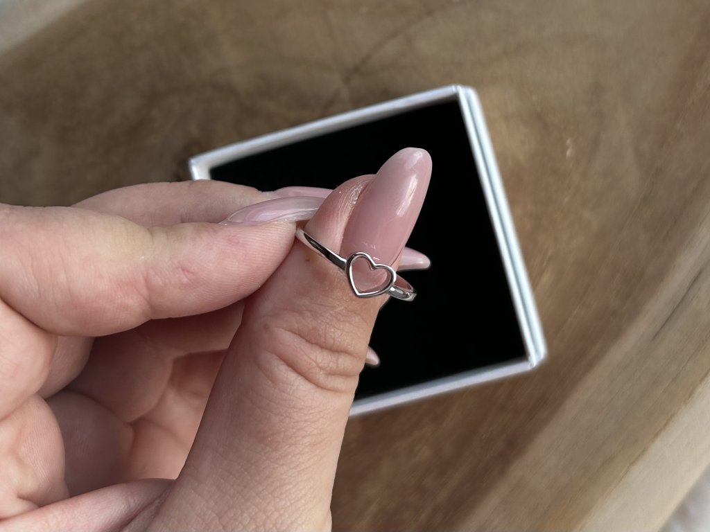 Jemný stříbrný prsten s otevřeným motivem srdce, který symbolizuje lásku a eleganci. Rhodiovaná povrchová úprava zajišťuje vysoký lesk a ochranu proti opotřebení. Tento minimalistický šperk je ideální pro každodenní nošení nebo jako dárek pro někoho blízkého. Lehký a pohodlný design zaručuje příjemné nošení po celý den.
