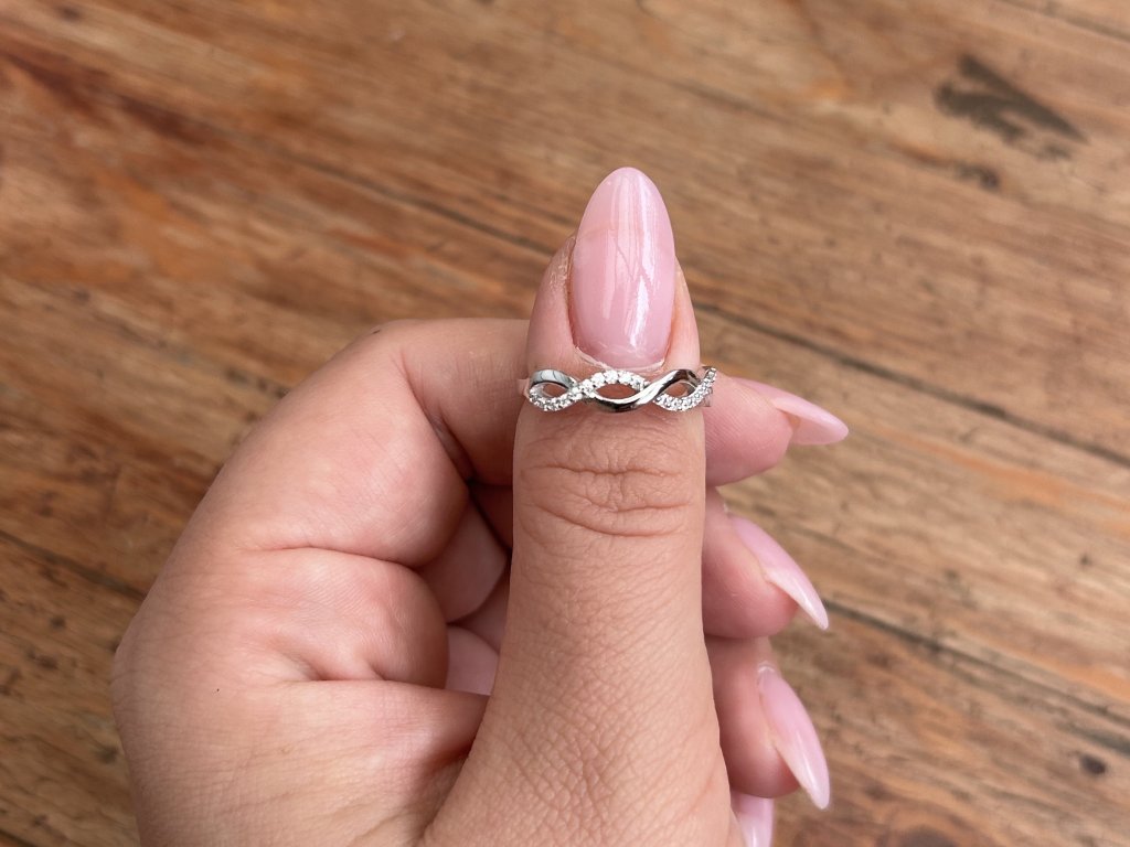 Design: Tento prsten vyniká svým proplétaným vzorem, který symbolizuje propojení a harmonii. Díky zasazeným jemným zirkonům působí elegantně a decentně, přičemž jeho jemné detaily přitahují pozornost a dodávají mu jiskru. Design je univerzální a nadčasový, což z něj dělá ideální doplněk k různým stylům a příležitostem.