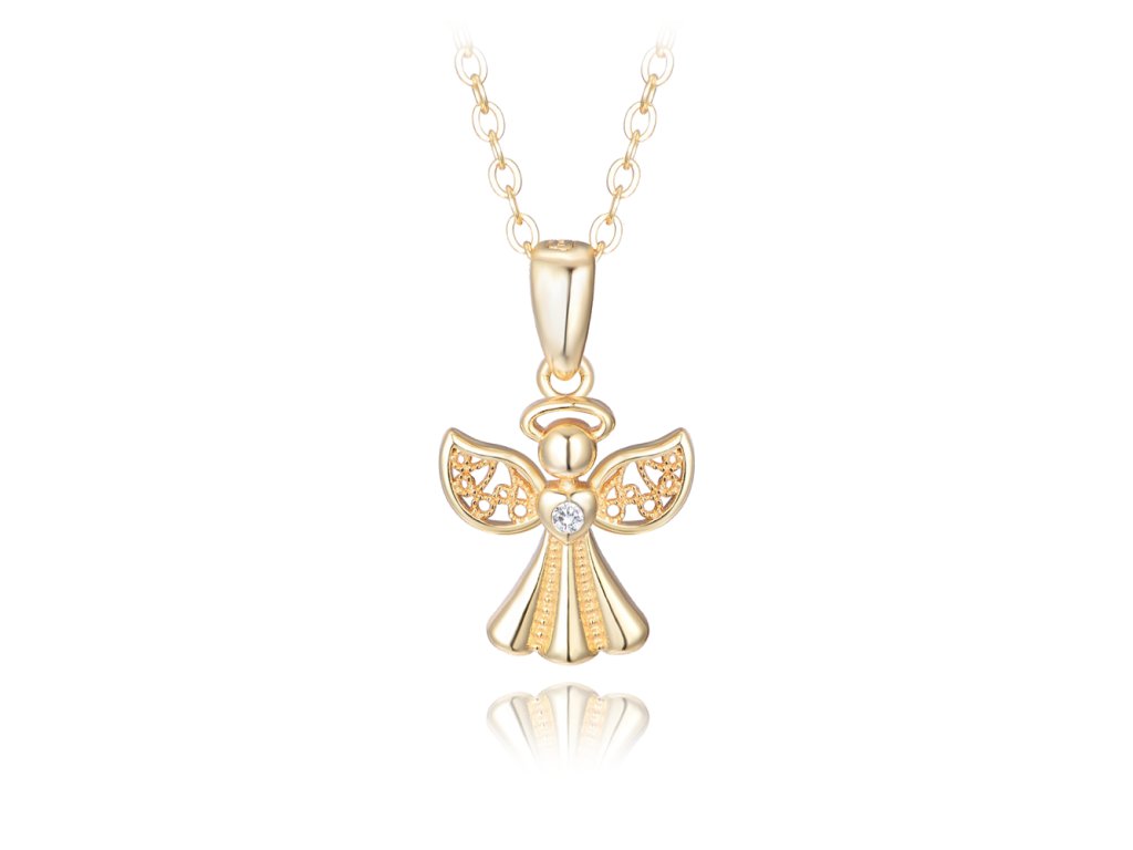 Pozlacený stříbrný náhrdelník s andělem a zirkonem