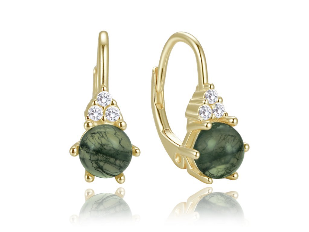 Materiál: Vyrobeno ze stříbra 925/1000 s pozlacením 14K zlatem a ochrannou vrstvou e-coating. Ozdobeno mechovým achátem s přirozenou kresbou a čirými zirkony.
